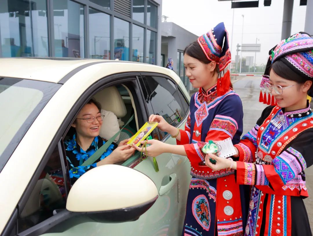 “跑了這么多地方,第一次在高速公路上體驗(yàn)到這么有特色的活動(dòng),還有民族特色的小禮品,這一趟行程真是收獲滿滿!”旅客李先生途經(jīng)賓陽(yáng)南收費(fèi)站時(shí)感慨道。