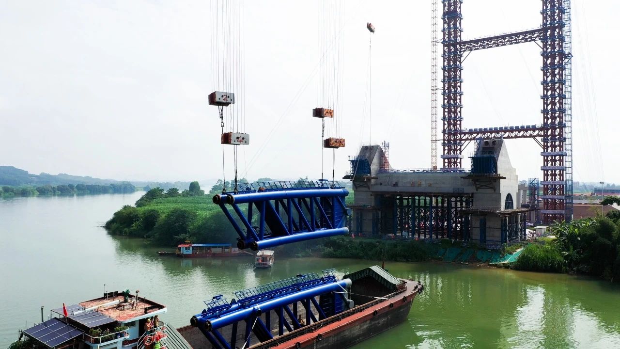 南寧南過(guò)境線公路上正右江特大橋首節(jié)拱肋順利安裝